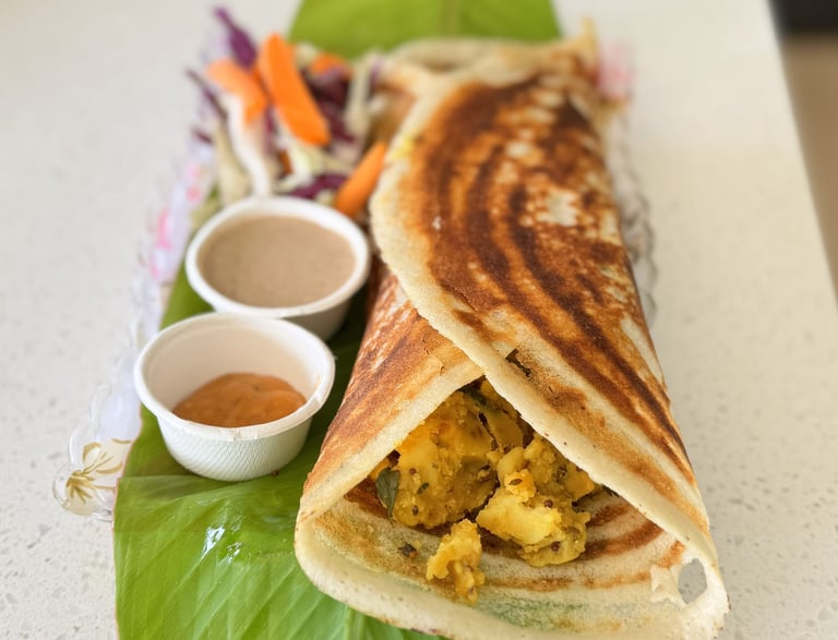 Aroha Dosas brings authentic South Indian flavours to local markets, using seasonal ingredients and fresh produce, served with care and aroha.